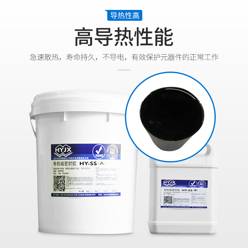 雙組份縮合型導熱灌封膠,分為A、B組份,A:B=10:1。黑色,無味,難燃,邵A硬度30--40。
